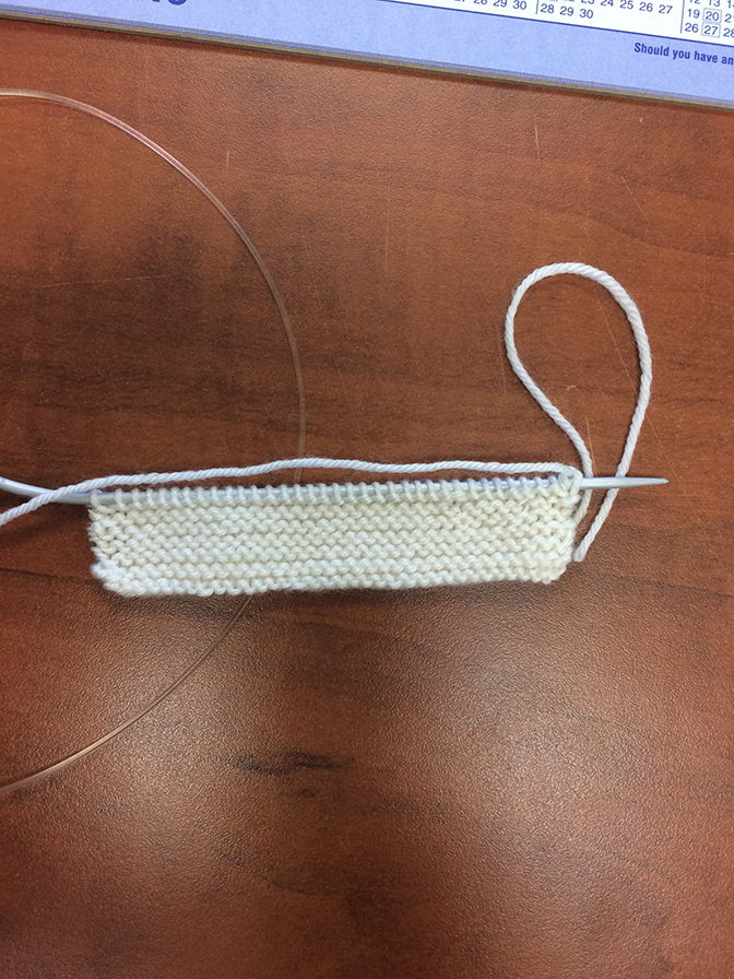Test swatch square on the needles